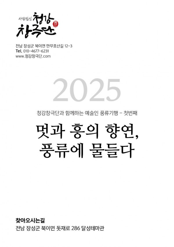 2025년 3월 : 멋과 풍류의 향연, 풍류에 물들다 페이지 정보 작성자 관리자 작성일25-03-04 16:20 조회200회 댓글0건 이전글 다음글 목록 본문 2025년 3월 “멋과 풍류의 향연, 풍류에 물들다” 첫번째 기타, 베이스기타, 북, 소리꾼들이 모여서 즉흥공연을 계획하고 있습니다. 많이 놀러오셔요^^ 댓글목록 등록된 댓글이 없습니다. 이전글 다음글 목록